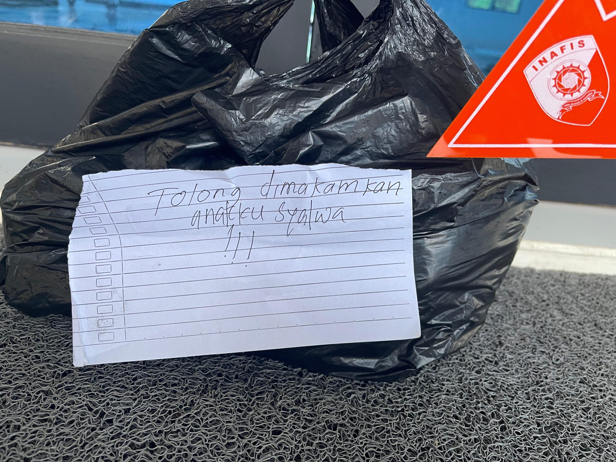 Sebuah bungkusan dalam kresek plastik yang diduga mayat seorang bayi ditemukan di depan pintu mesjid, di Desa Kartiasa