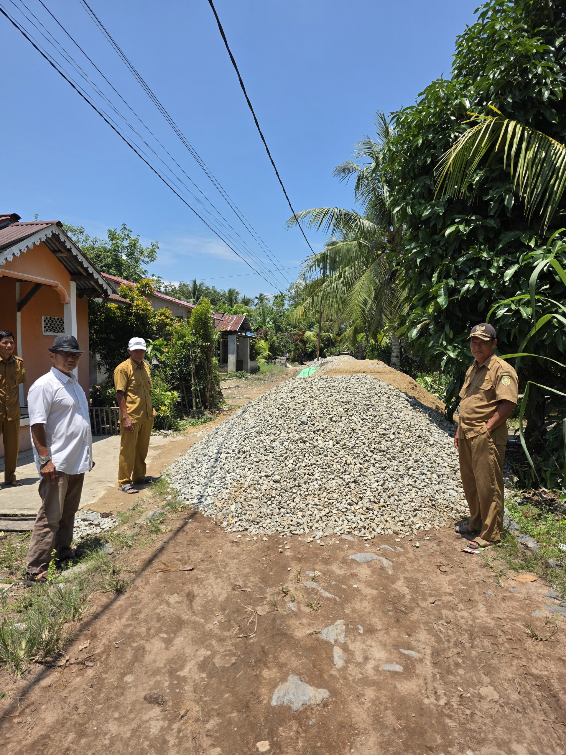 “Oleh sebab itu saya akan berusaha semaksimal mungkin untuk membangun desa yang saya pimpin ini, salah satunya jalan yang saat ini sedang dalam tahap pengerjaan”, tuturnya menjelaskan.