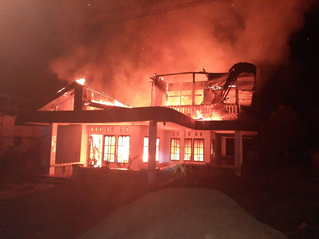 “Saat dilakukan upaya pemadaman oleh tim damkar api sudah menjalar dan membesar dari lantai dua”, sebut Kapolsek Teluk Keramat, Iptu Dwi Hendy Winoto,S.SH.